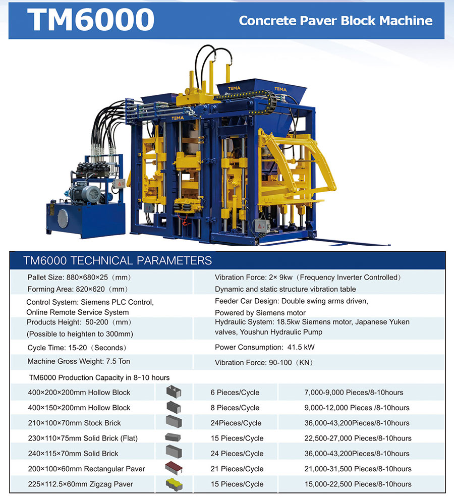 TM6000中型多功能砖机是针对市政工程、中型建材厂开发的主力机型,集成液压压制与振动成型双系统,可通过更换模具生产透水砖、植草砖、空心砌块等10余种砖型。设备适配城市人行道改造、海绵城市建设等场景,支持批量生产高强度路面砖,是兼顾灵活性与产能的高性价比选择。
